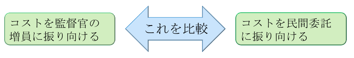 しかし、このような考え方には、到底、賛成できない。民間人の活用を図るにしてもコストはかかるのである。そのコストを民間人の活用に振り向けることと、監督官の増員に振り向けることのどちらが、より大きな効果があるのかが議論されなければならないのである。