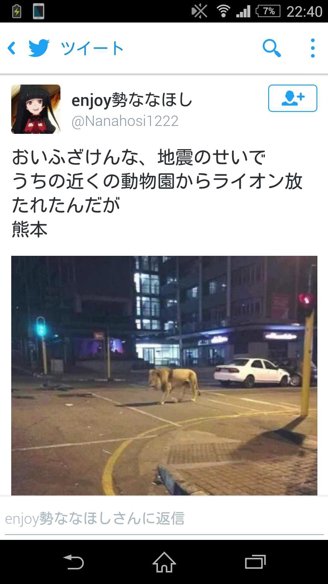しかも、実際にライオンを見たのであれば投稿の文章も「うちの近くの動物園からライオン放たれたんだが」などという、伝聞のようなものにはならないのではないだろうか。「ライオンが道を歩いている」などといったものになるのが自然だろう。