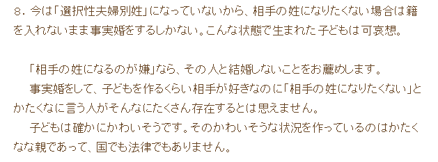 下図は、2015年12月の杉田水脈氏のブログであるが、相手の姓になるのが嫌なら、『結婚しないことをお薦めします』