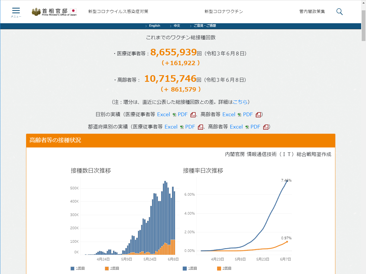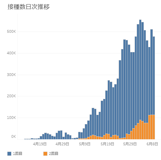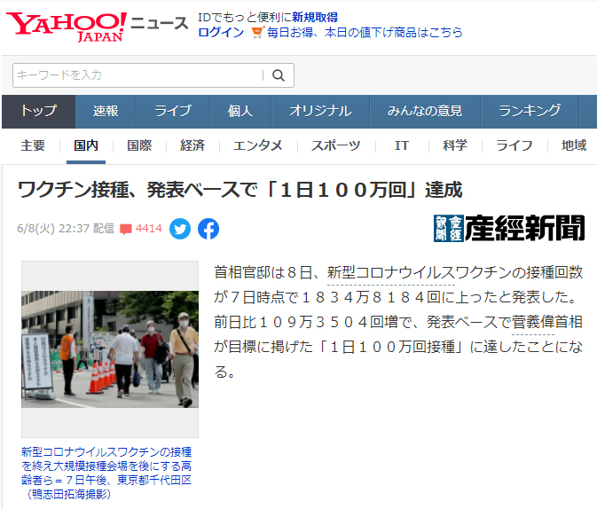 ※ 産経新聞2021年6月8日「ワクチン接種、発表ベースで『1日100万回』達成」